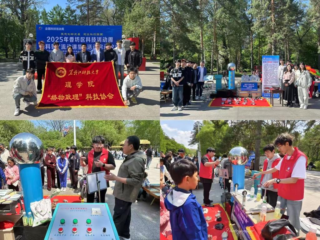 为深入学习贯彻习近平总书记关于“科技创新、科学普及是实现创新发展的两翼,要把科学普及放在与科技创新同等重要的位置”的重要指示精神,5月18日,理学院参加2025年香坊区科技活动周暨科普“流动课堂”活动,携手哈尔滨工业大学、东北林业大学、黑龙江中医药大学等高校及单位,共同组建18支科普队伍开展科普宣传活动。