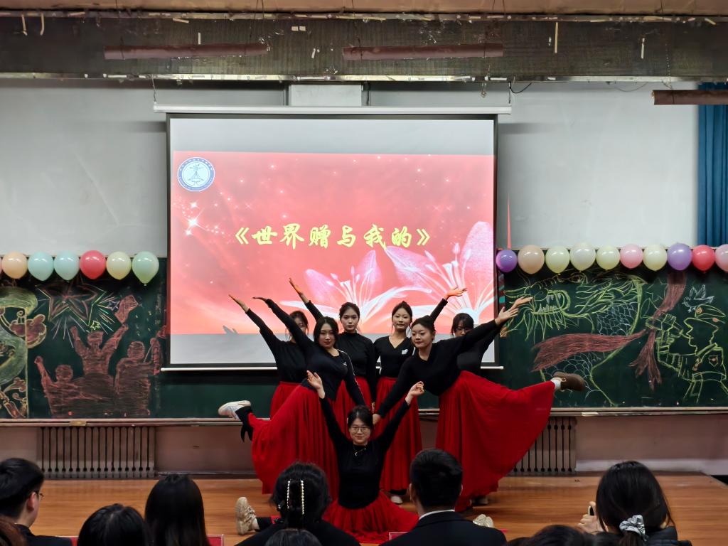历史短片的播放带领全体师生穿越时空,重温“一二·九”运动中先辈们为民族危亡挺身而出的峥嵘岁月,让红色记忆深植心间,为整场大会奠定了庄重而激昂的基调。随后,舞蹈《世界赠与我的》精彩上演,诠释新时代青年对生活的热爱与对未来的憧憬,展现出蓬勃向上的青春朝气。
