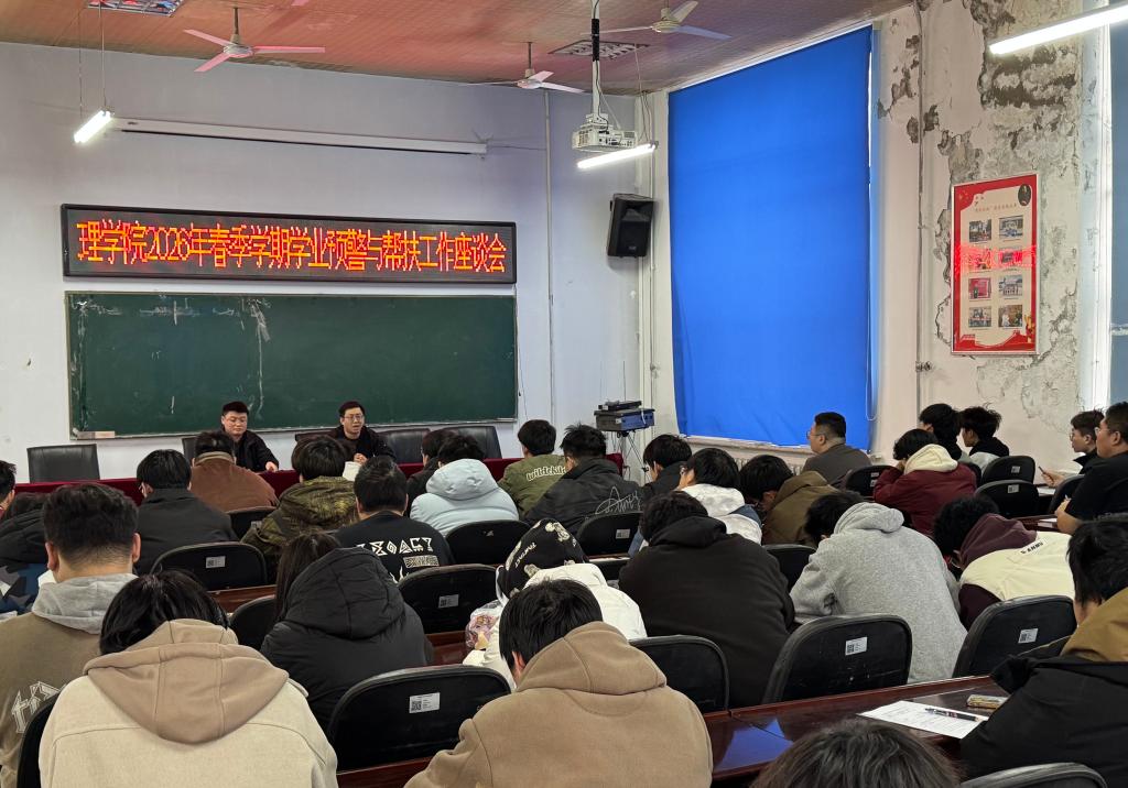 为进一步加强学风建设,关注学业发展困难的学生群体,通过学校教育、家庭教育和学生自我教育相结合,强化对本科生学业过程管理,帮助学生顺利完成学业。2026年3月20日,理学院召开2026年春季学期学业预警与帮扶工作座谈会。学院全体学业预警学生参会。